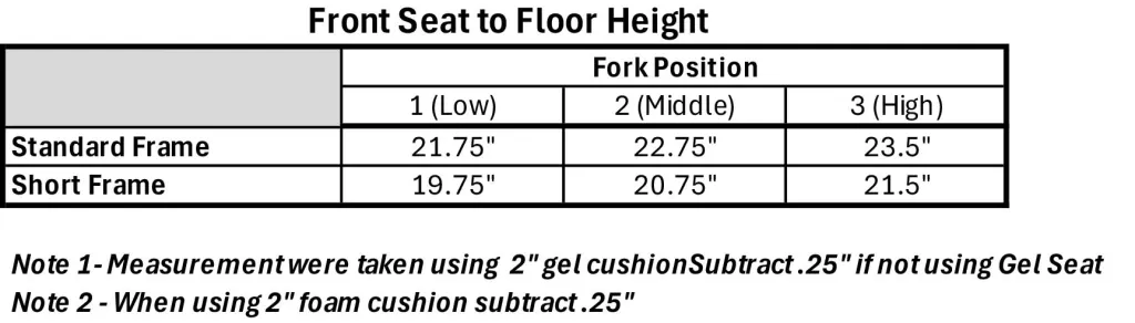 - Adjustments impact seat-to-floor height for toilet clearance or to match wheelchair height for transfers.
