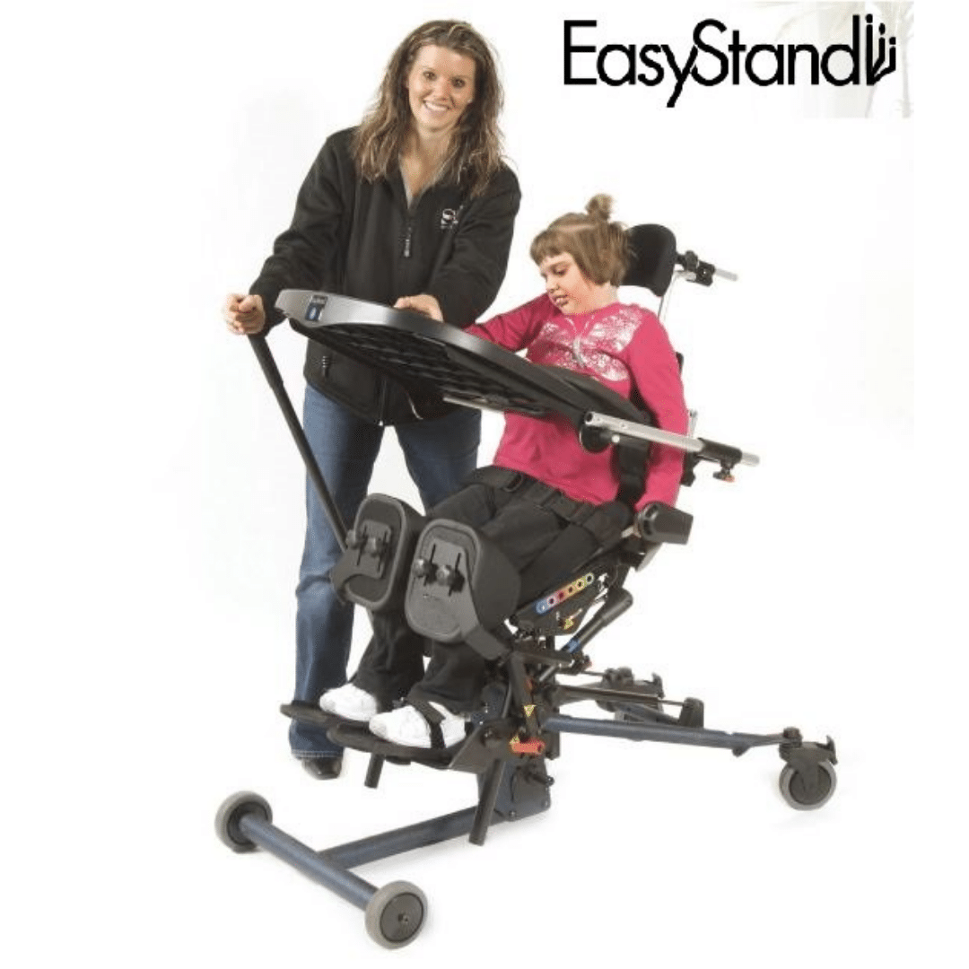 The EasyStand Bantam is a unique standing frame for children which combines the convenience of a sit-to-stand stander with the additional functionality of a supine stander. This combination allows the child to be positioned in an infinite number of positions.