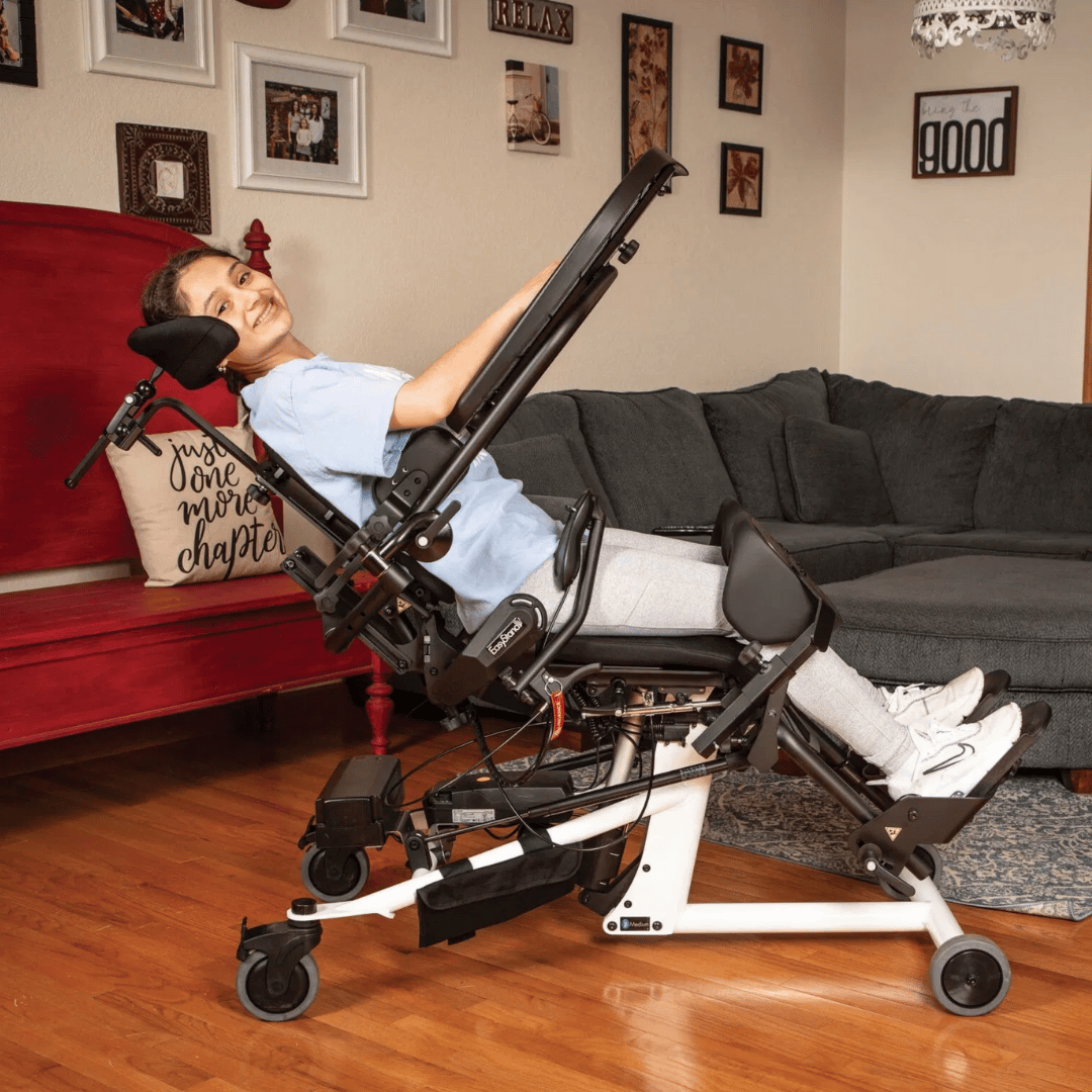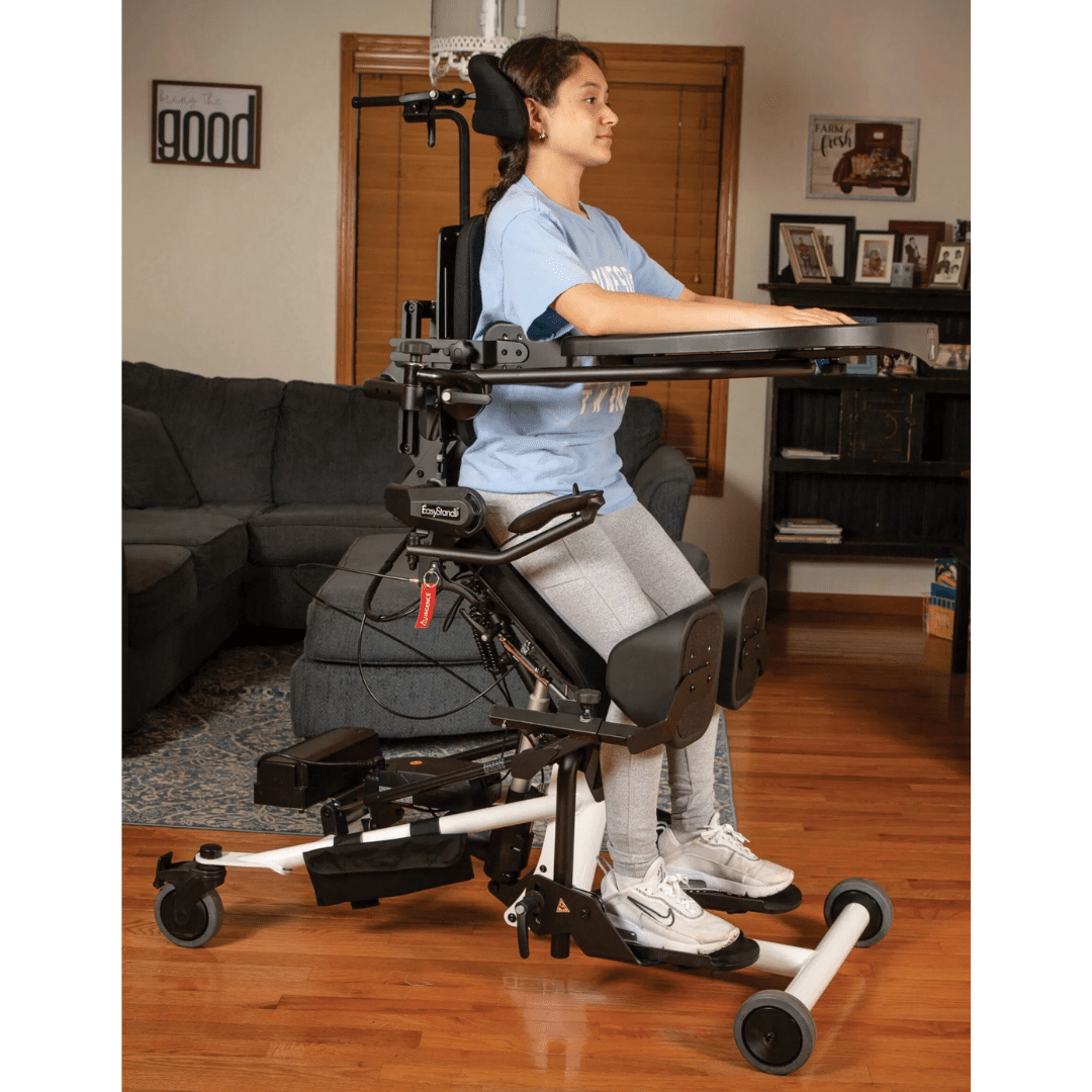 - After standing upright for a period of time, the child can rest in a seated, tilted or supine position, then return to upright standing when their energy increases.