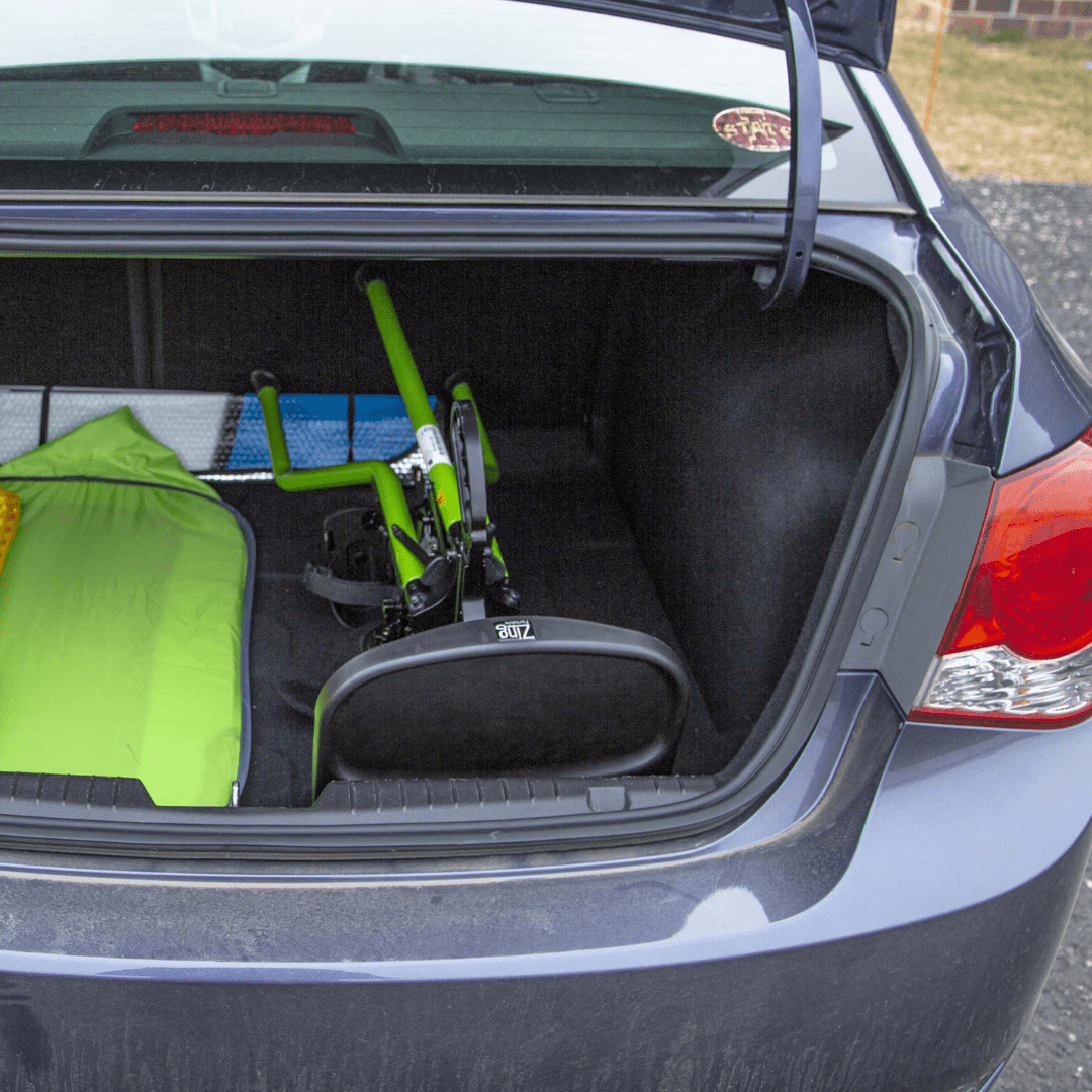 • With a small footprint when folded, traveling with your Zing stander is now possible and when a standing session is completed, the Zing Portable can be packed away without taking up much space