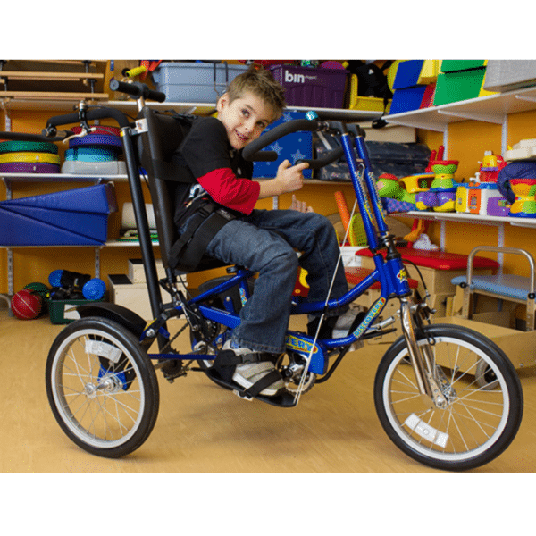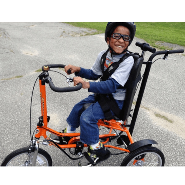 - T-Bar which can be used as a brake mount or caregiver handle – option to add Rear Steering so the rider can learn to ride and stop with a little help