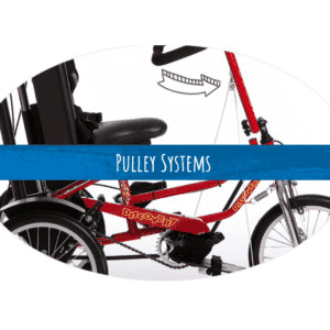 • Adjustable crank and sprocket system to accommodate spastic legs or different leg lengths