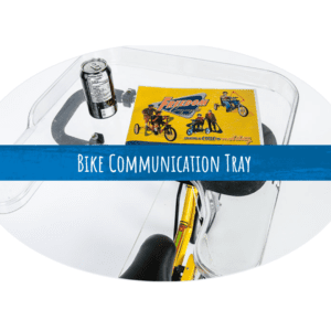 • Stabilised bike with parking brake for transferring