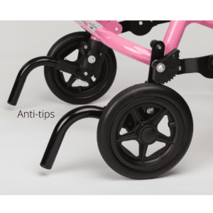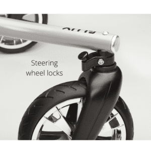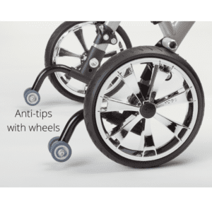 Reverse roll locks keep constant and reliable contact with the rear wheels and lock as soon as the rear wheels start rolling backwards. They can be deactivated by a safety pin, so that FLUX can be allowed to roll forward and backward.