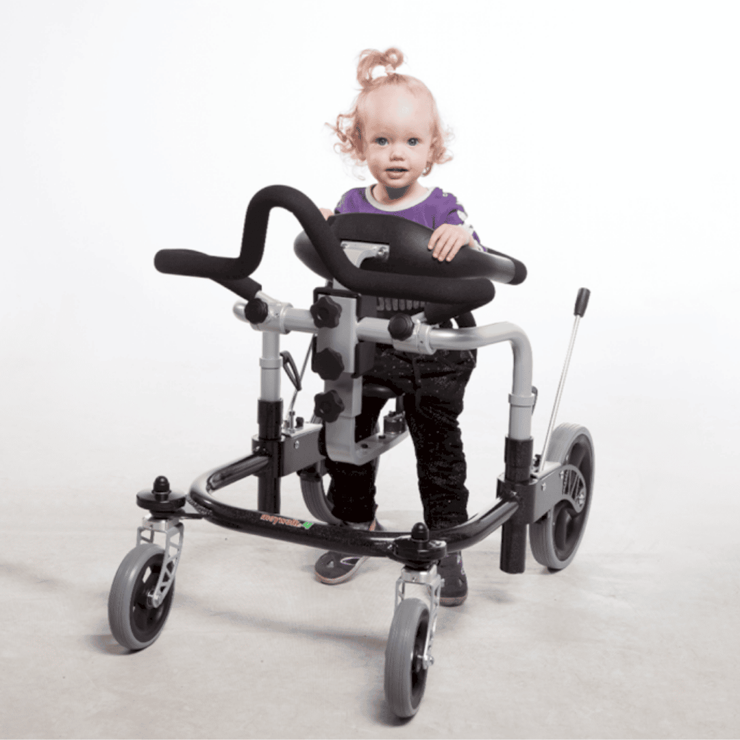 Designed with a dynamic seat and a unique spring system, the gait trainer follows the user’s movements, ensuring optimal weight-bearing. The body ring allows for movement of the trunk while supporting an optimal upright posture.