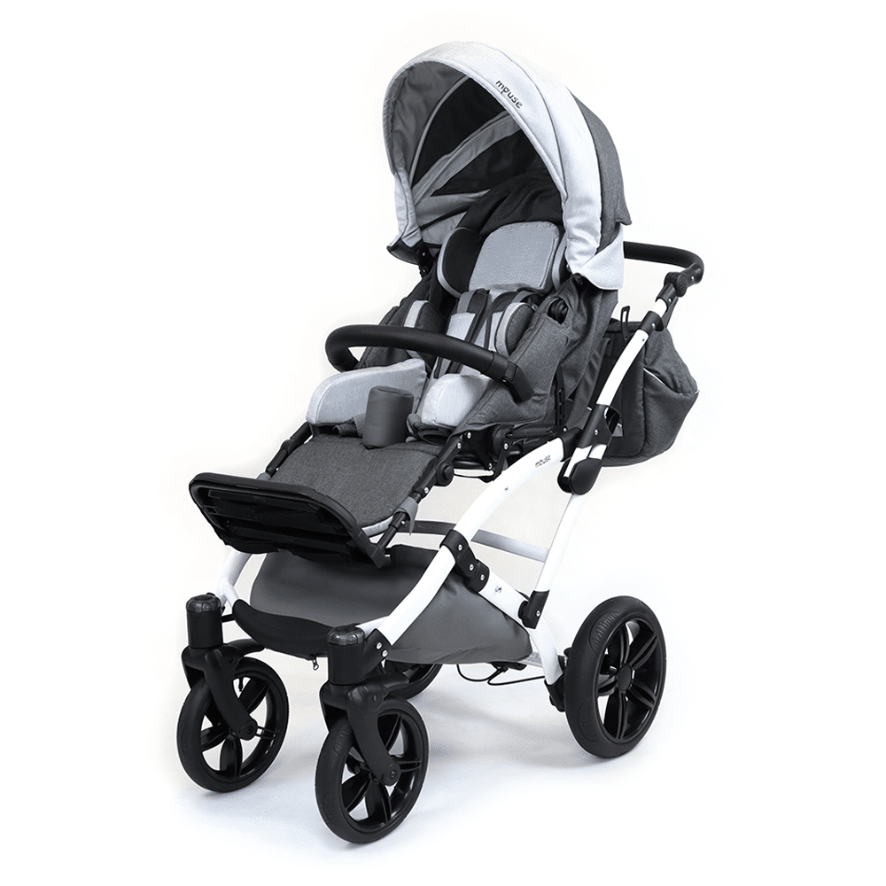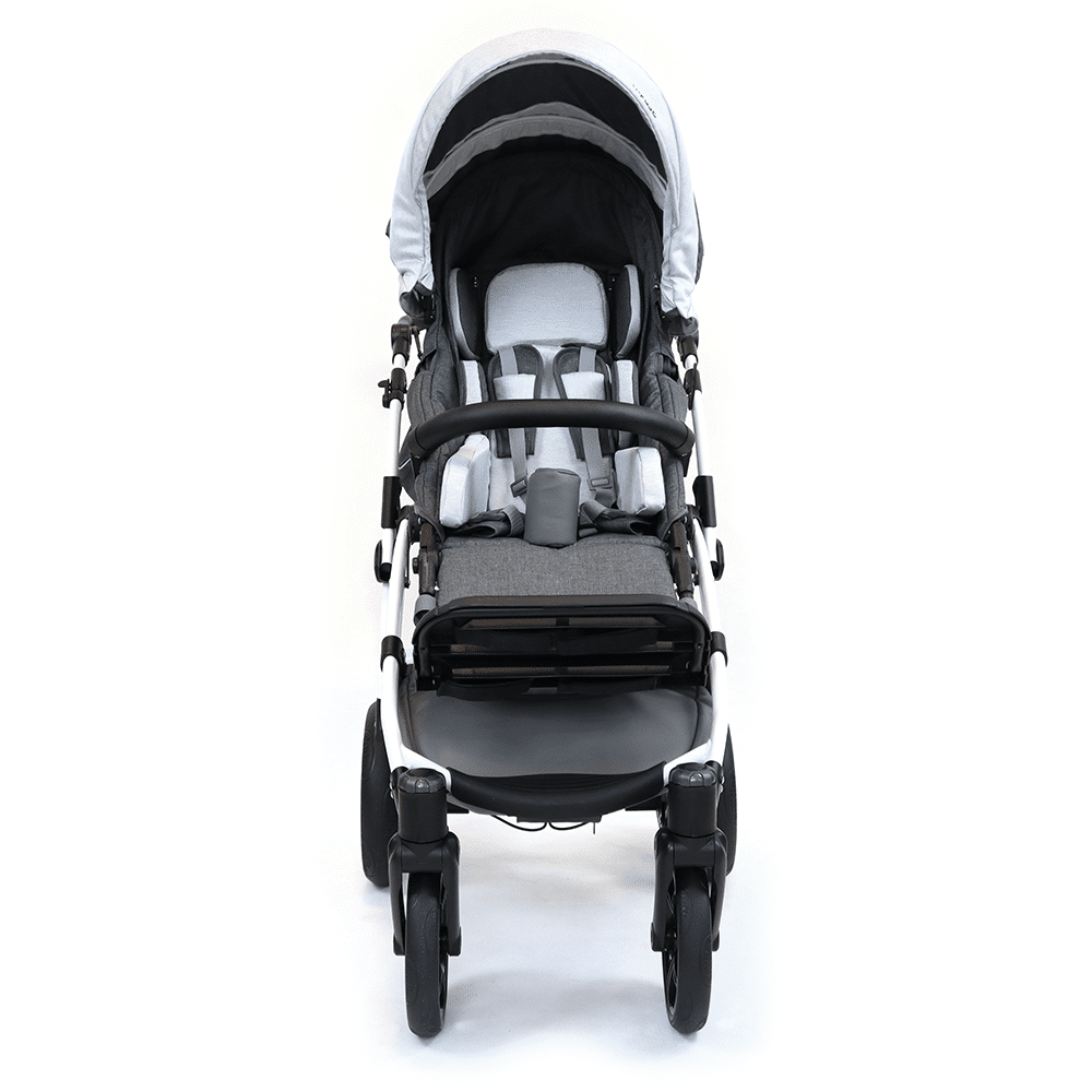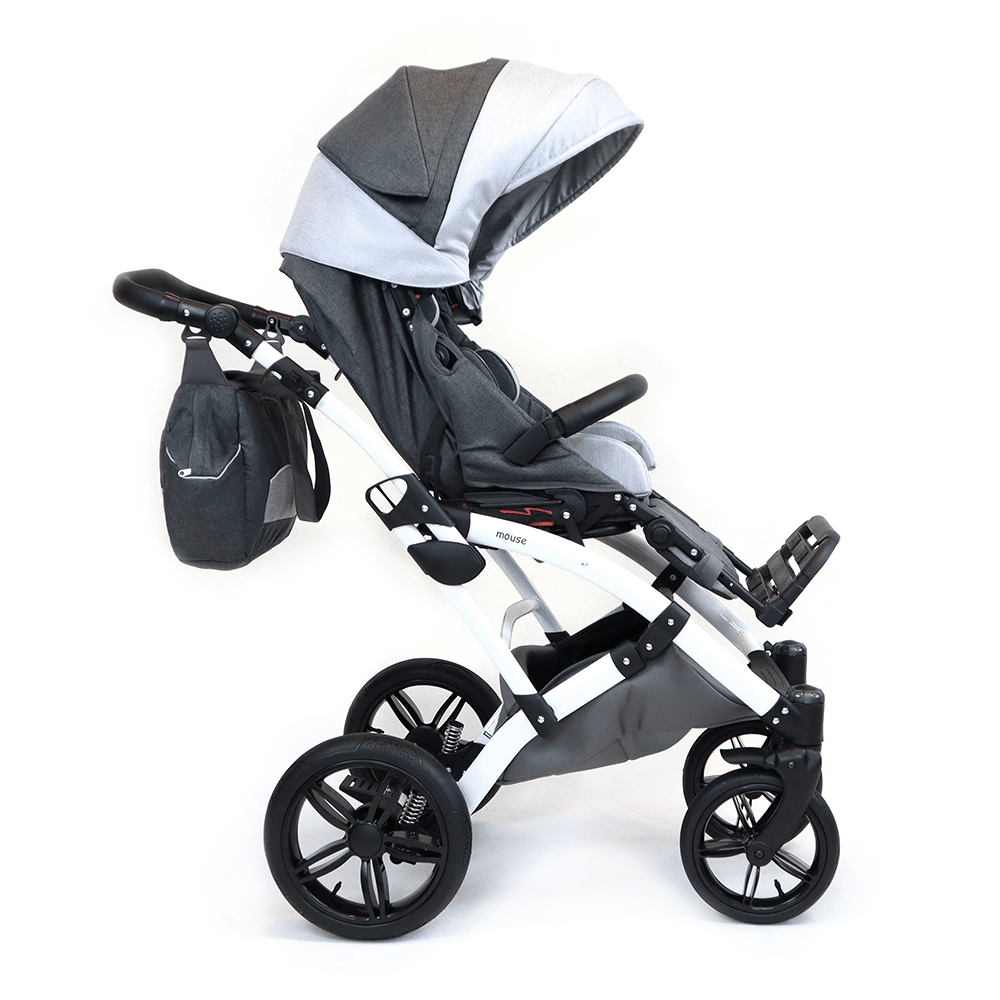 MOUSE has a wide range of adjustments of both the backrest, seat and footrest which allow the child to obtain an optimal position in the stroller. It also has the option of mounting the adjustable pads and a seat minimising kit which makes traveling even more safe and comfortable for a small user.