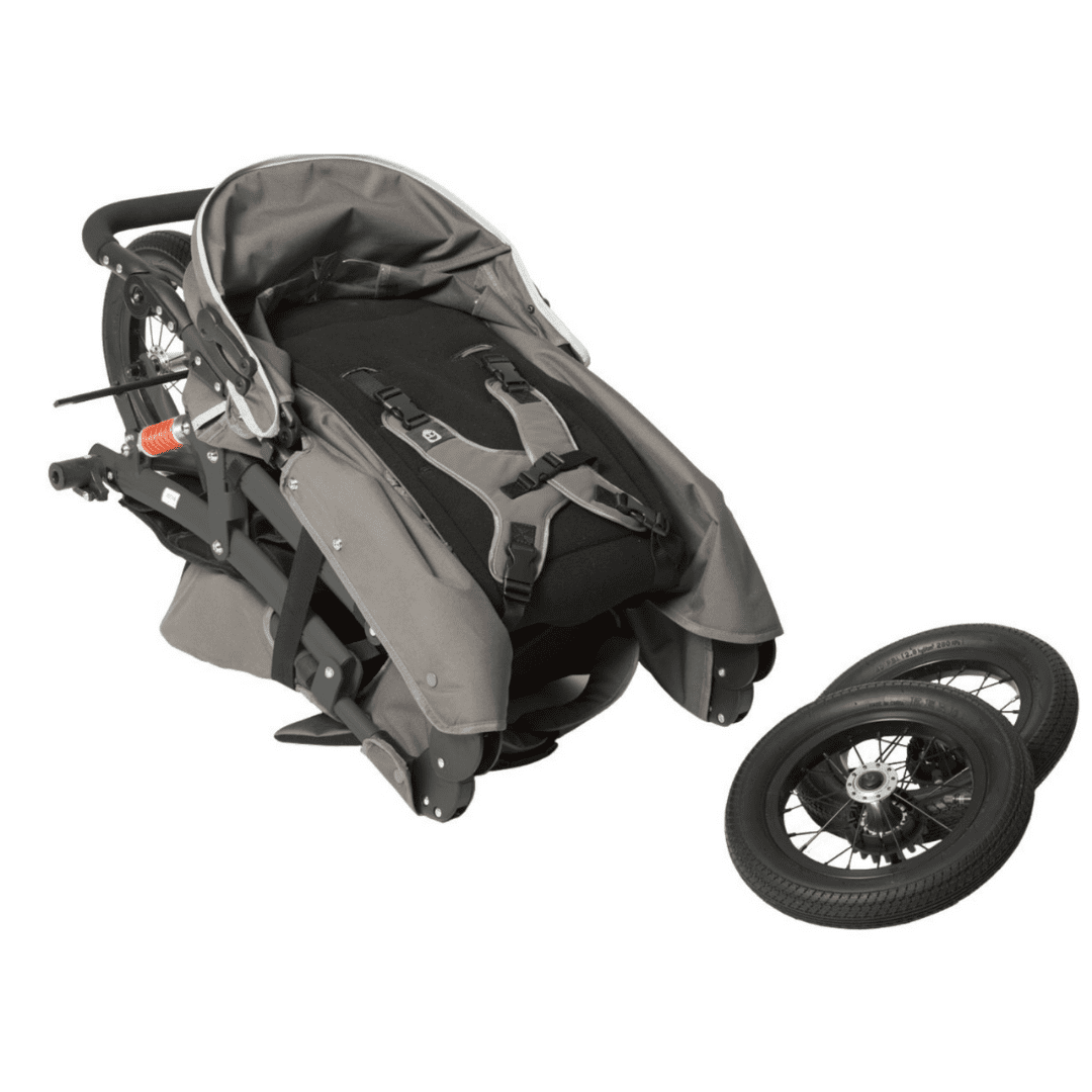 The Special Tomato Jogger stroller was expertly designed to meet the comfort and support needs of each child in a convenient, easy-to-use, compact folding system for their parents and caregivers. The Special Tomato Jogger stroller can be used for casual strolling and light jogging. With its folding frame and quick release pneumatic tires, the Special Tomato Jogger fits compactly into the trunk of most cars with minimal effort. You do not need to remove the wheels to fold the Jogger.