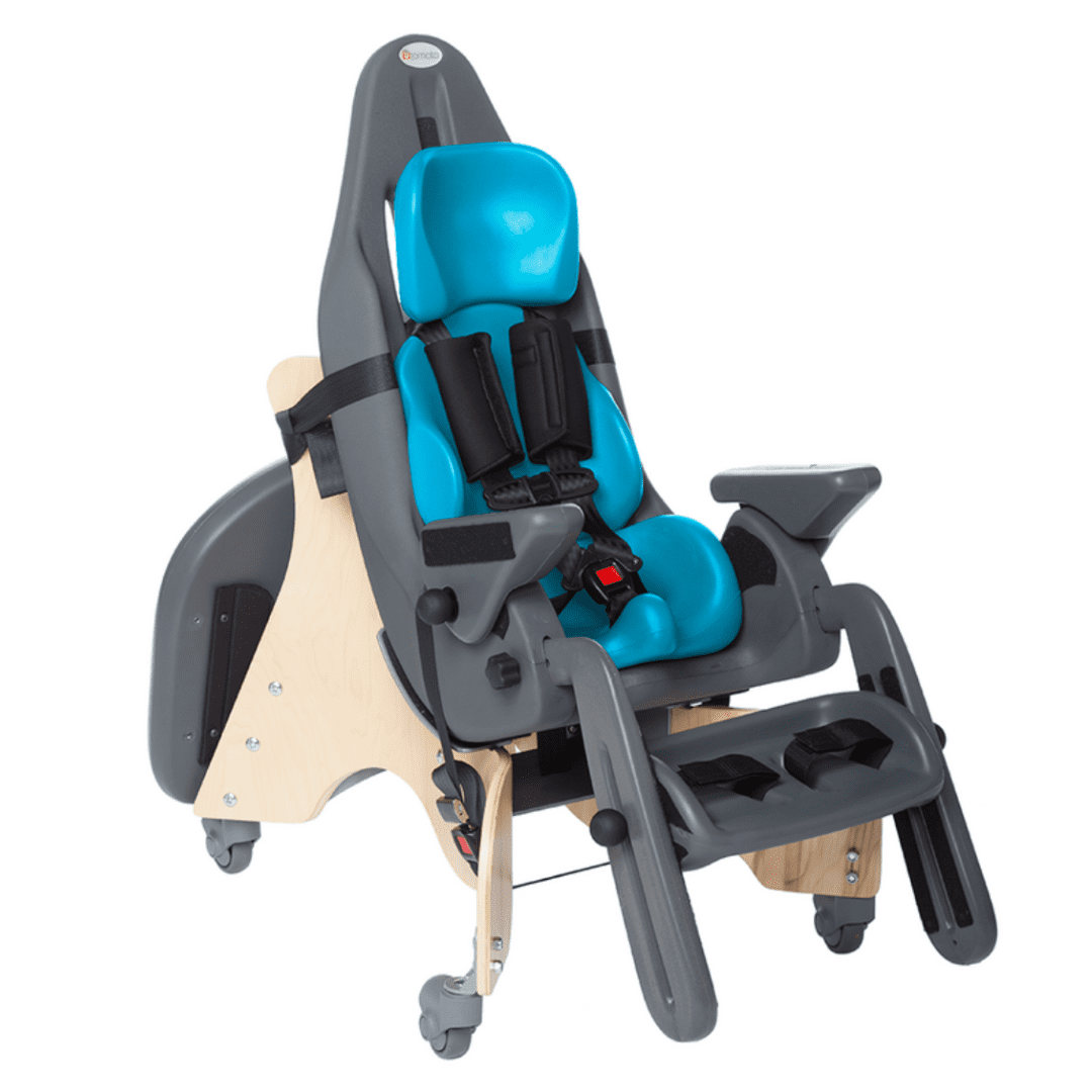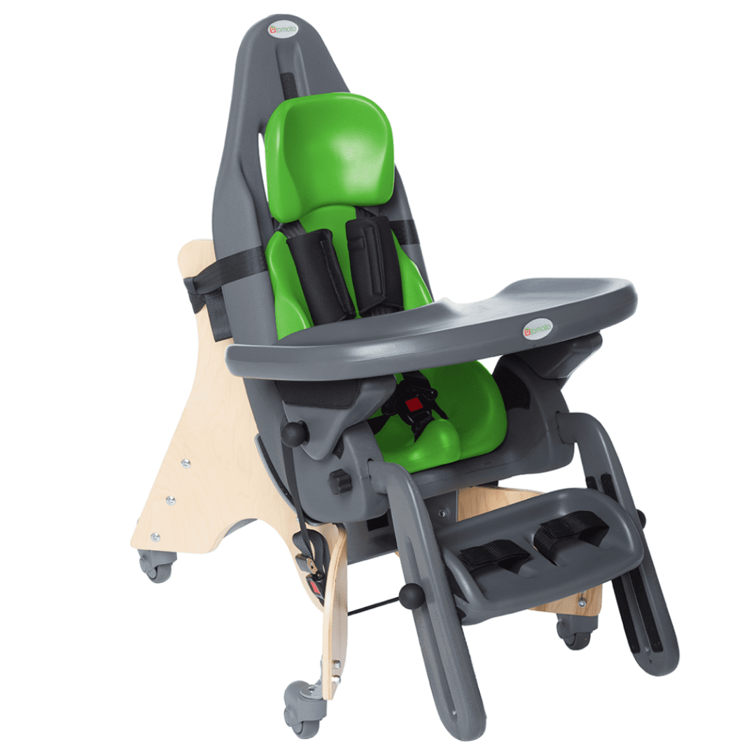 The Special Tomato MPS can also be purchased with a Mobile Floor Base. Made of wood, this base was designed specifically for the Multi-Positioning Seat and allows for 10 – 25 degrees of Tilt-In-Space to accommodate a range of positioning needs. It is equipped with 4 swivel casters with rear locks for easy maneuvering at home or around the classroom.