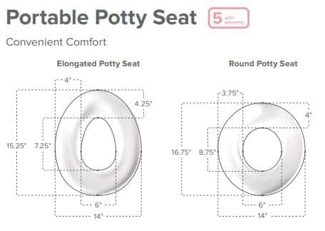 The Portable Potty Seat comes in two versions: Standard (for round toilets) & Elongated (for elongated toilets). The Portable Potty Seat includes a drawstring cord backpack to make this Portable Potty Seat truly portable! It has a plastic lining for hygienic purposes. The outside of the backpack has a large outside pocket to hold wipes or any other necessities.