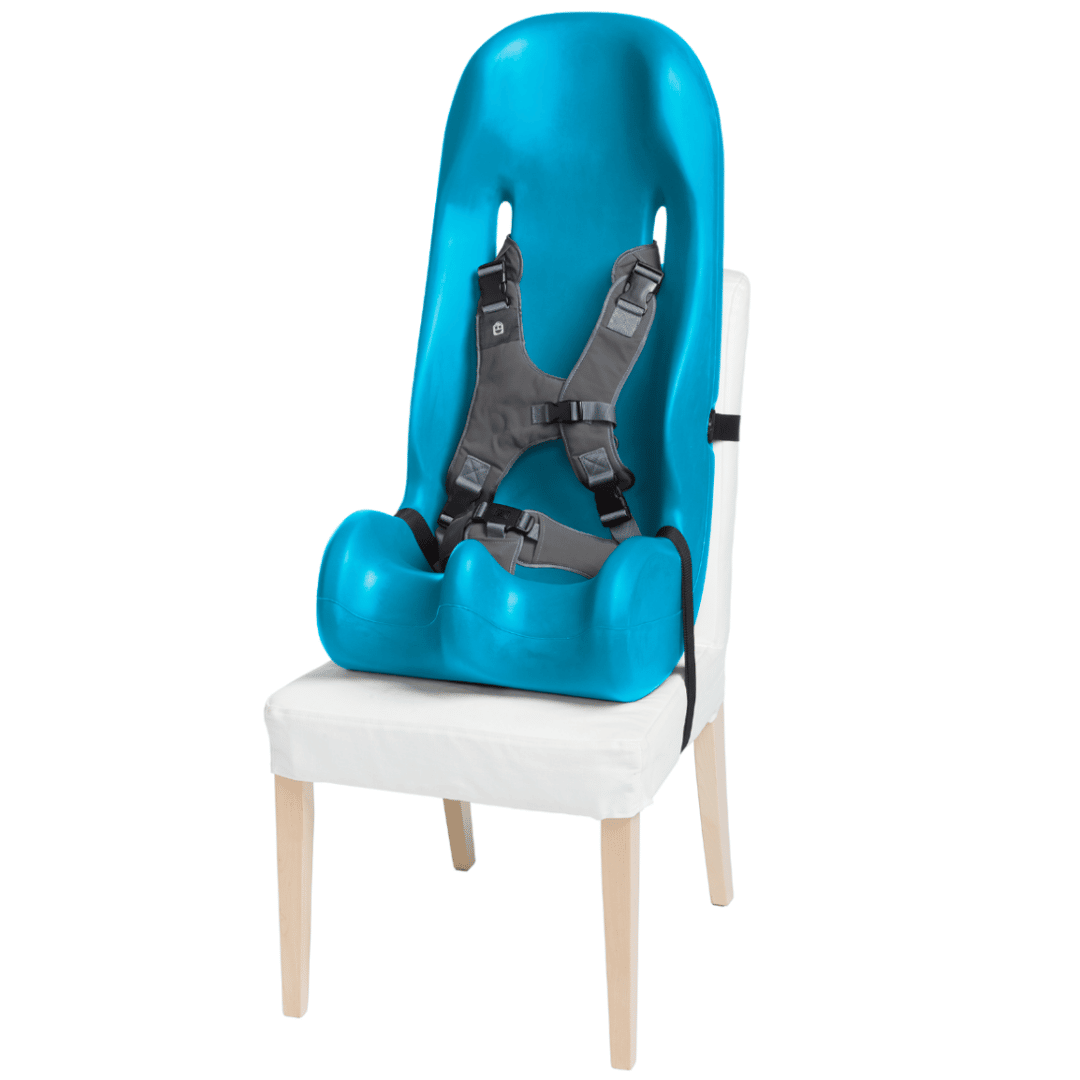 All of the sitters come with attachment straps as a standard feature. This allows you to securely attach the Sitters to a stable dining chair, classroom chair, stroller or any of the the Special Tomato Bases: Floor Wedge, Stationary Base or Mobile Base.