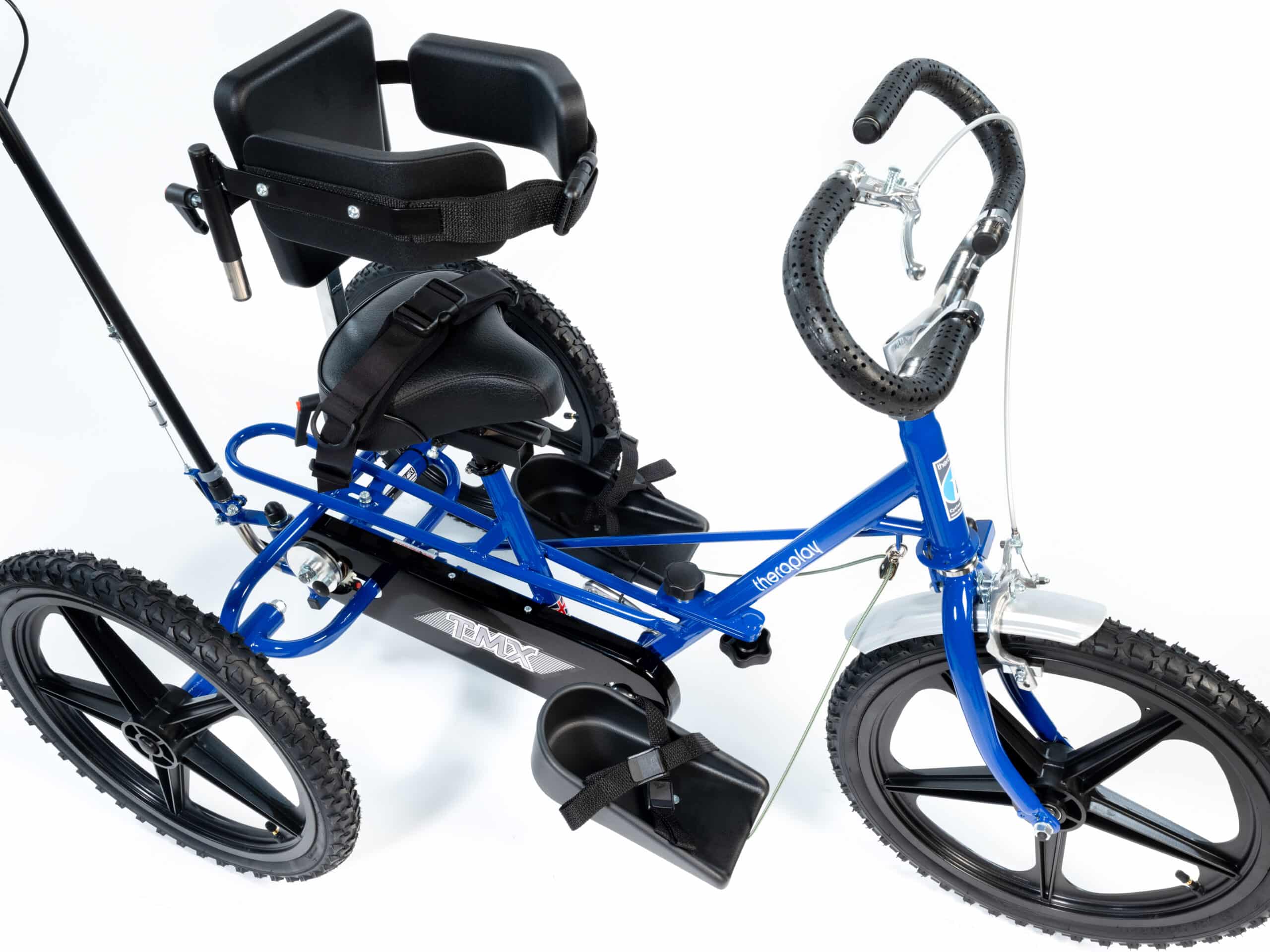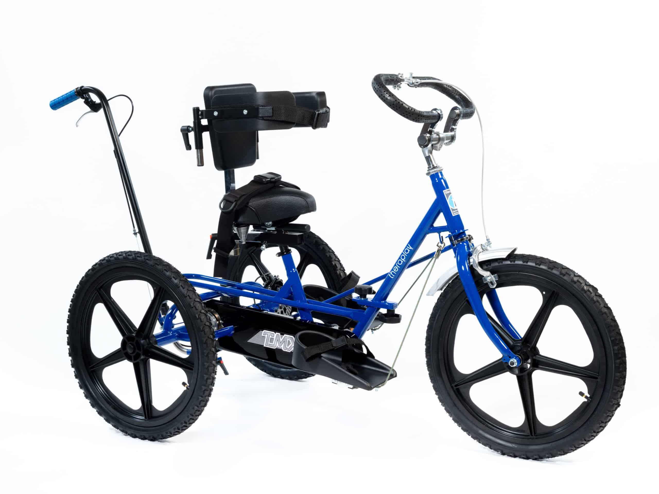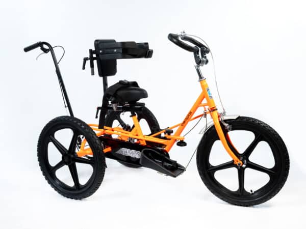 The TMX can be customised to the rider’s requirements with a choice of 10 colours, gearing options and it can also be adapted by adding positioning supports which assist the rider to maintain a safe and comfortable seating position. If additional guidance is required, this model can be fitted with either a Control Pole or a Rear Steering System, a Frame Folding Mechanism can also be added which allows the cycle to be stored and transported easily.