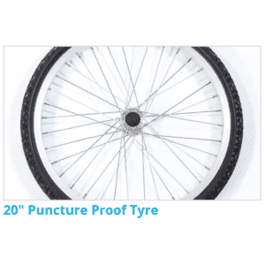 The Tracker 20″ Tricycle features a broad flat sided oval tubing frame for strength and 20″ wheels for smooth running over various terrains. It has a caliper brake with a parking feature, alloy handlebar stem, alloy hubs and an alloy crank set for smooth and easy pedalling. A Frame Folding Mechanism can be added which allows the cycle to be stored and transported easily.