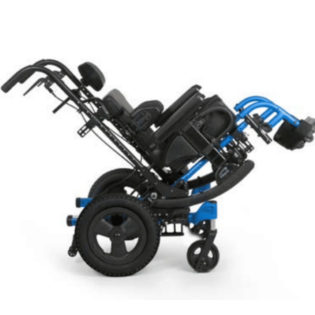 This tilting wheelchair uses patented rotation-in-space technology to rotate the seat frame around the user’s center of gravity. This rotational system provides the shortest possible wheelbase without compromising stability. It also ensures a smooth and controlled rotation.