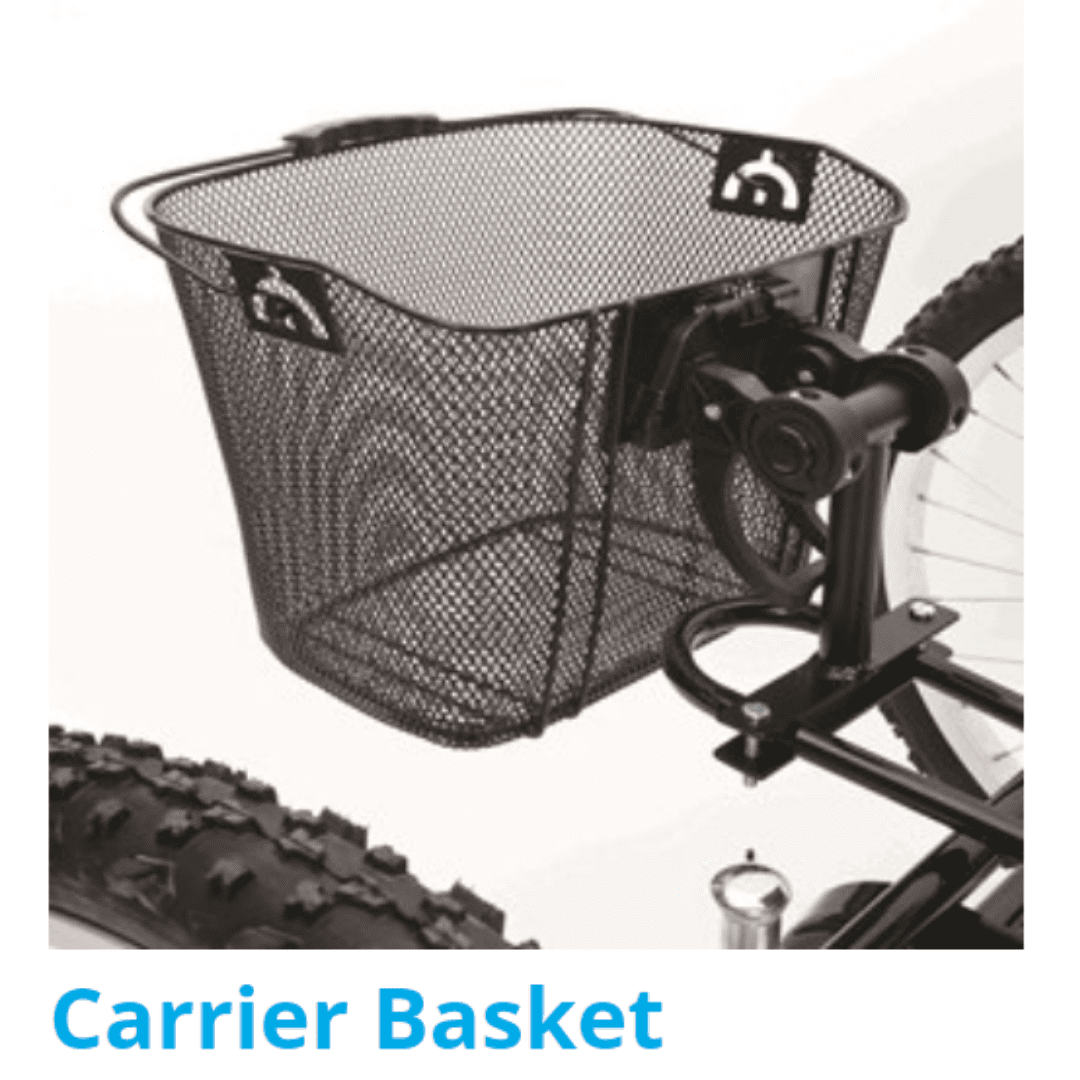 This basket can be mounted on the handlebars or on the axle frame on the rear of the tricycle.