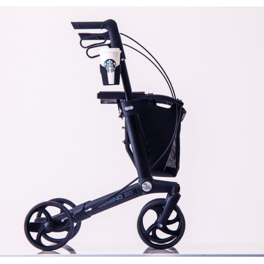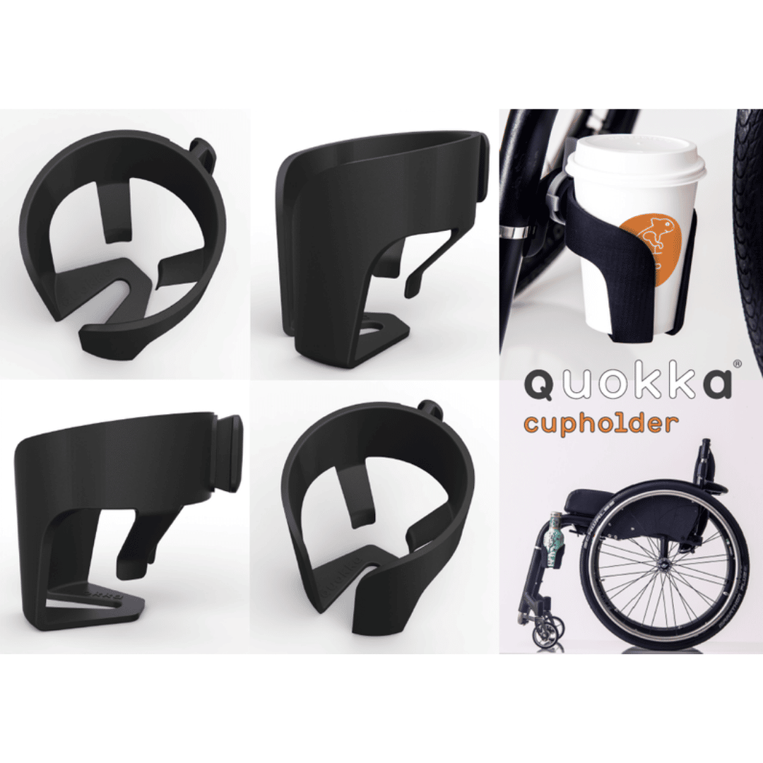 Much like the rest of the Quokka range it attaches to the wheelchair or rollator using an adaptor.