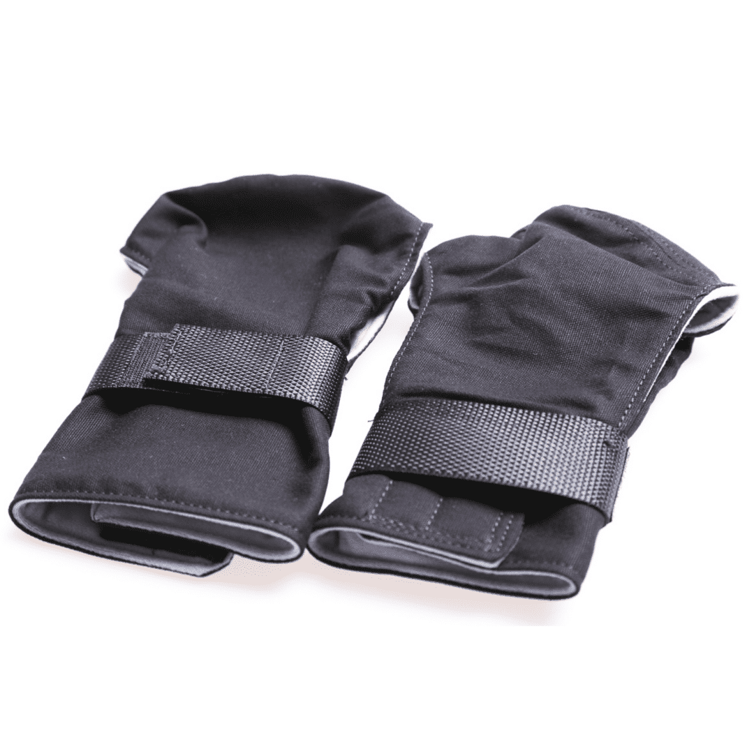 Senior mittens, in Black Beaver nylon outside fabric and soft polyester inside is shaped for right or left hand to follow fingers nicely and help grip bike handlebar, walker or crutches.